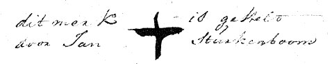 3. Jan Hendriksz. Sturkenboom, geboren in Vechten, gedoopt 18 Mei 1743 in Bunnik, overleden 19 Aug 1815 in Houten, leefde in Houten "op de Houtense Wetering", leefde 6 Apr 1794. Hij trouwde 28 Apr 1778 in Werkhoven, Johanna 'Jannigje' Pauw, geboren waarschijnlijk 1754 in Werkhoven, (dochter van Cornelis 'Kees' Pauw en Agata 'Aagje/IJda' Jansdr v Gend/Gent) gedoopt 2 Jul 1754 in Werkhoven (RK), overleden 11 Mrt 1824 in Schonauwen. Kinderen: